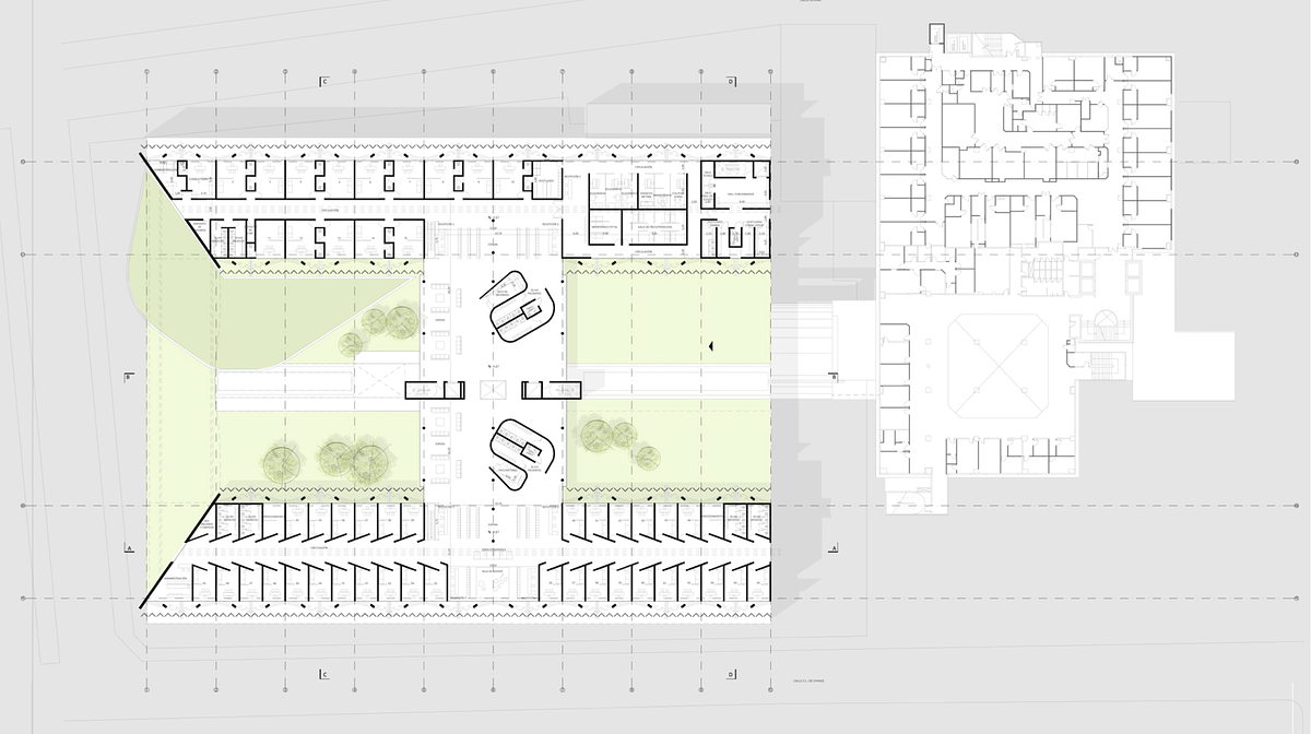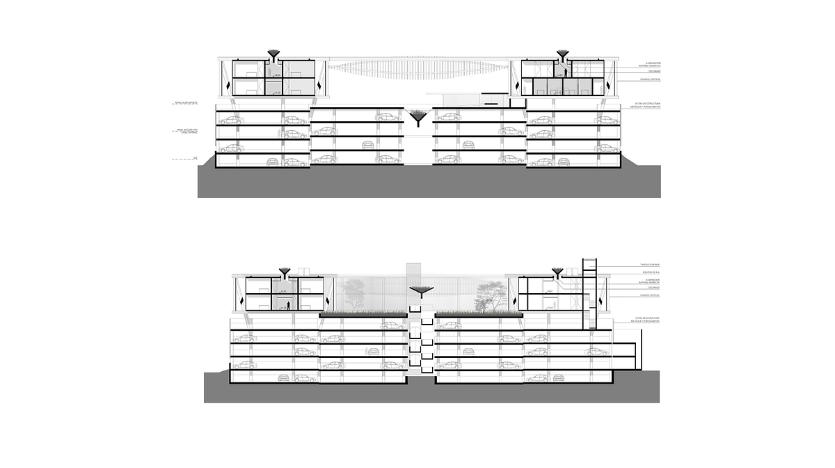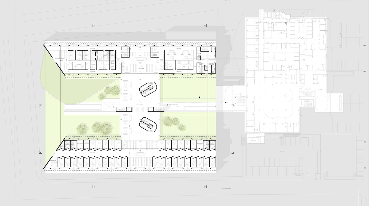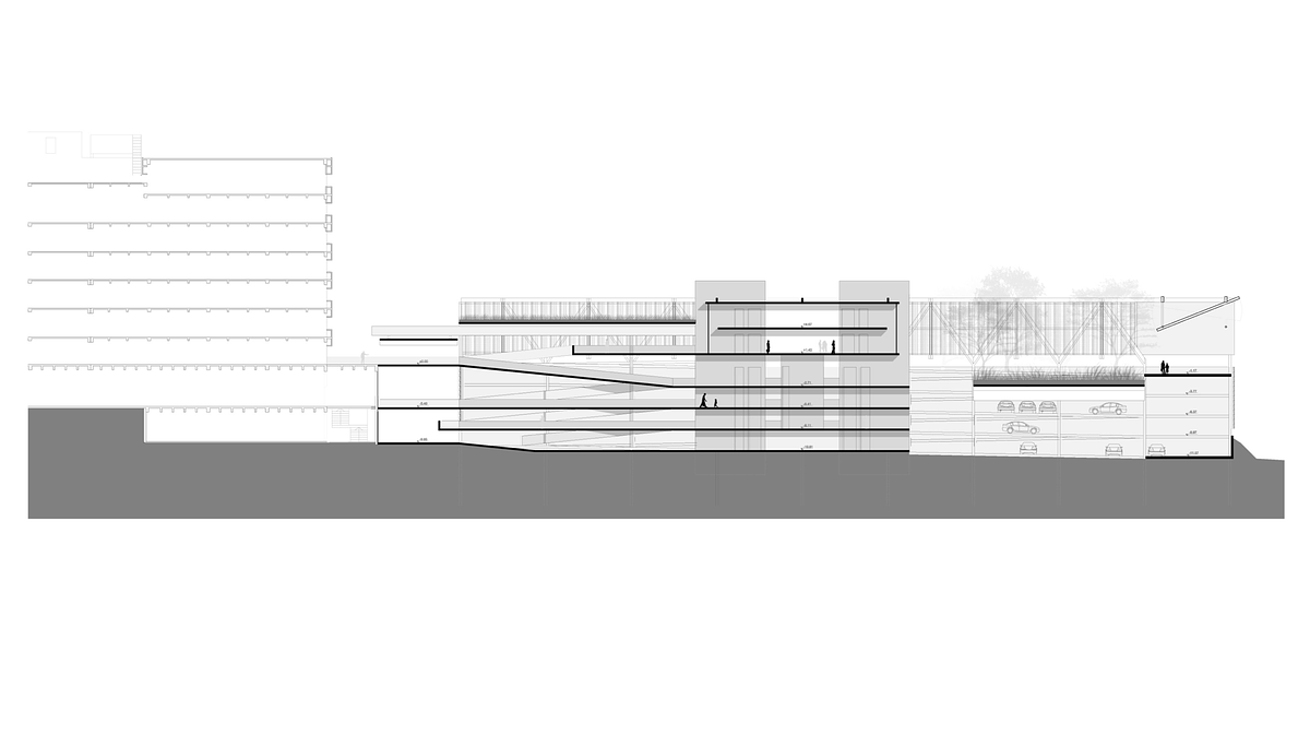 Este proyecto consistió en la ampliación estratégica de la clínica, respetando normativas y el contexto urbano. El diseño incluye un sistema de estacionamientos en dos etapas, conectados peatonalmente con el edificio existente mediante puentes en distintos niveles.