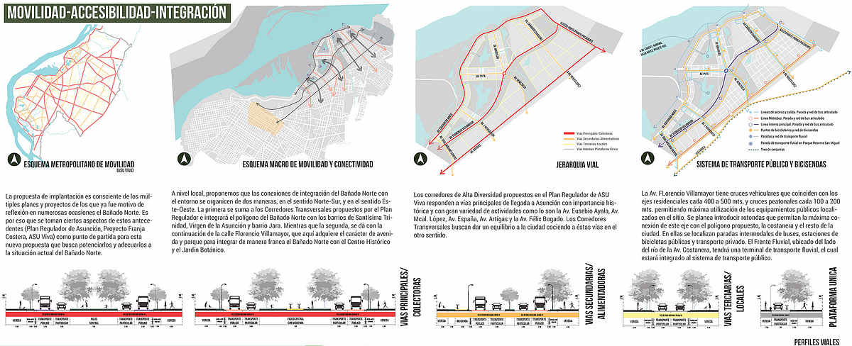 A través de una estructura de movilidad permeable que garantice la conexión de la ciudad con el Río Paraguay y, una estructura ambiental de espacios públi- cos que garanticen la calidad paisajista para los ciudadanos, la propuesta de- fine una seria de proyectos estratégicos que permitan que el territorio funcione como una unidad sostenible, conviviendo en correcta simbiosis con su entorno inmediato.